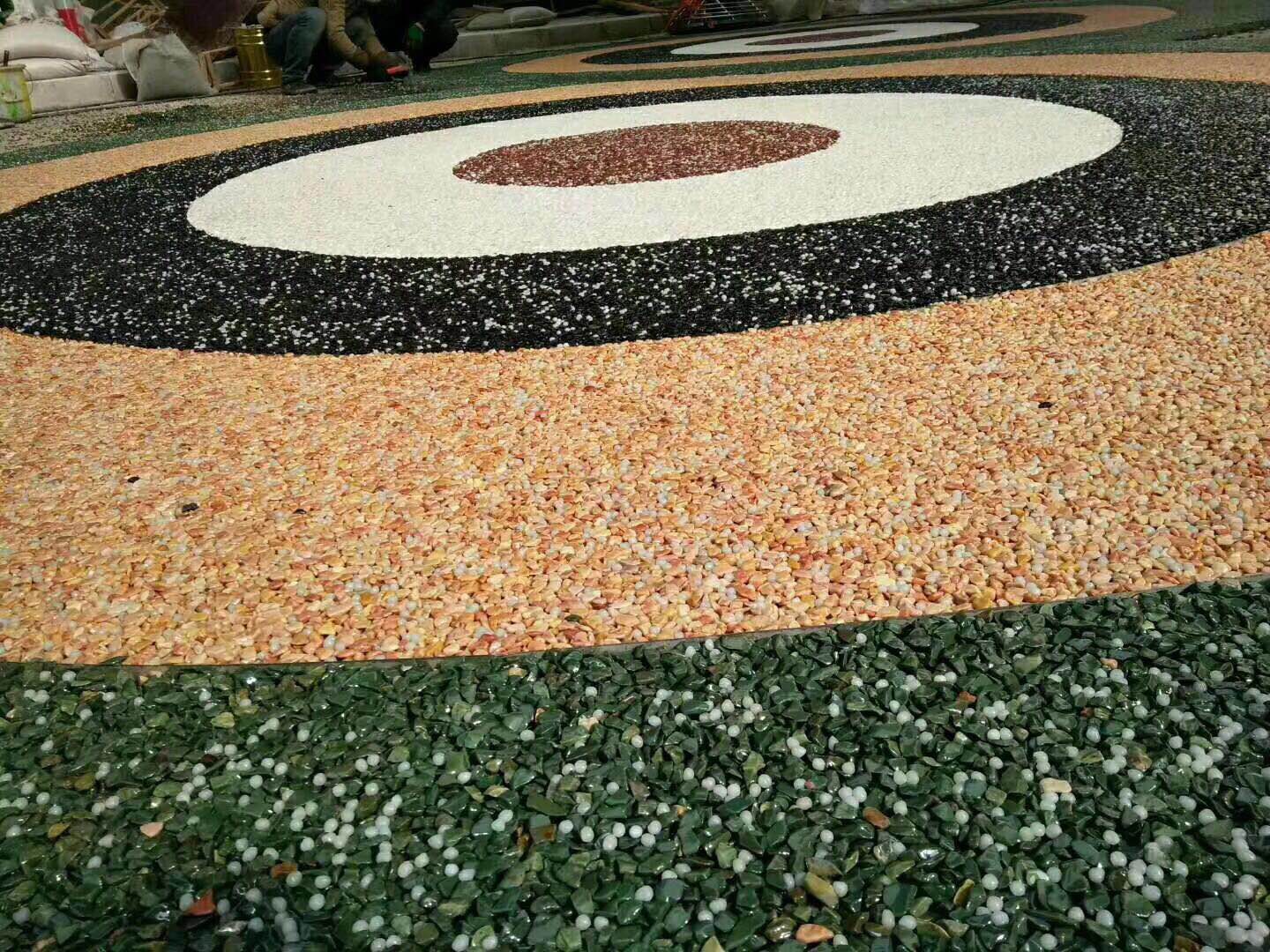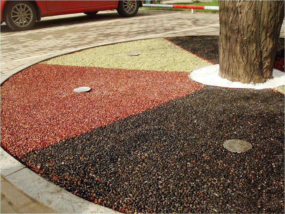 膠粘石透水路面是由改性高分子樹脂為膠結(jié)材料,將天然彩石、拋光色石、玻璃、水晶石、人造骨料等牢固地粘接在一起,鋪設(shè)在混凝土、透水混凝土、瀝青或級(jí)配砂石基層上的生態(tài)景觀地面鋪設(shè)材料,具有高效透水、自然美觀、色彩多樣、經(jīng)久耐用等特點(diǎn)。可用于透水性景觀道路、車型或人行道、公園和廣場(chǎng)等場(chǎng)所,也可應(yīng)用到室內(nèi)場(chǎng)所。