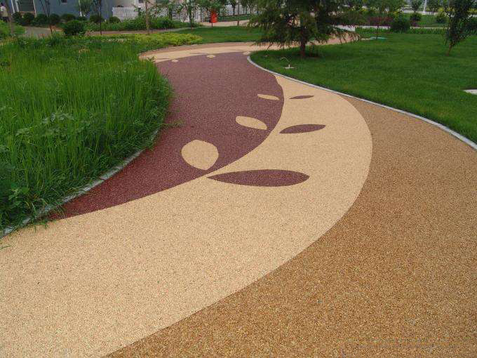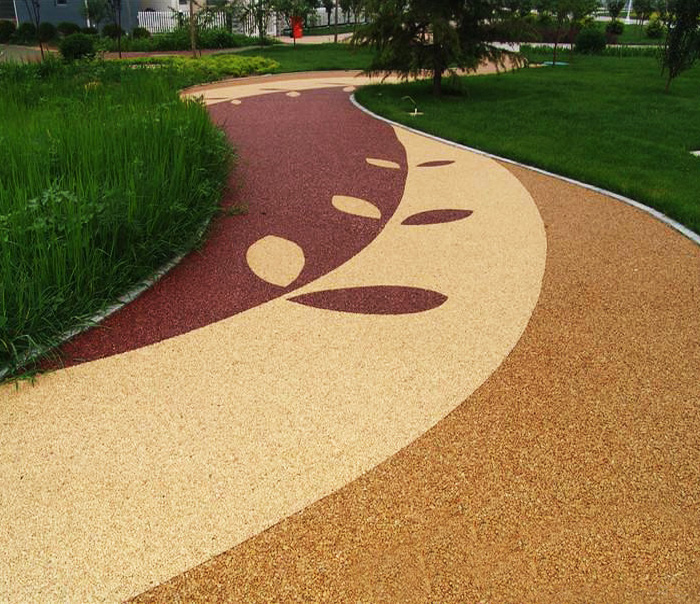 露骨料透水混凝土是以膠結(jié)料為粘合材料,將一定粒級的骨料粘合在一起形成多孔型鋪面,它以透水混凝土為基層,構(gòu)成的一種透水鋪裝地面。其特點(diǎn)是運(yùn)用天然石頭自身的色彩、形狀以及潤濕的光澤效果,使面層骨料實(shí)現(xiàn)自然鋪面效果。